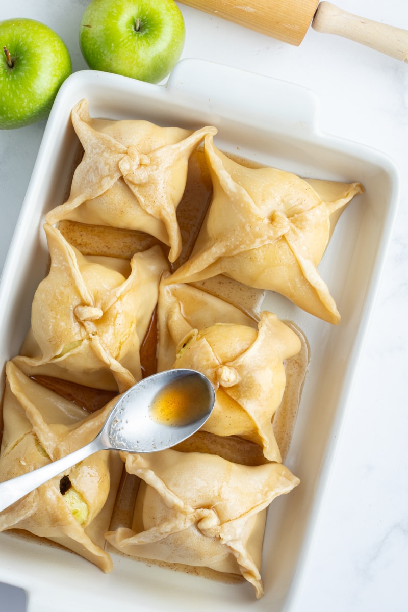 These easy to make Apple Dumplings are baked with a homemade crust stuffed with fresh apples and topped with a cinnamon brown sugar syrup.