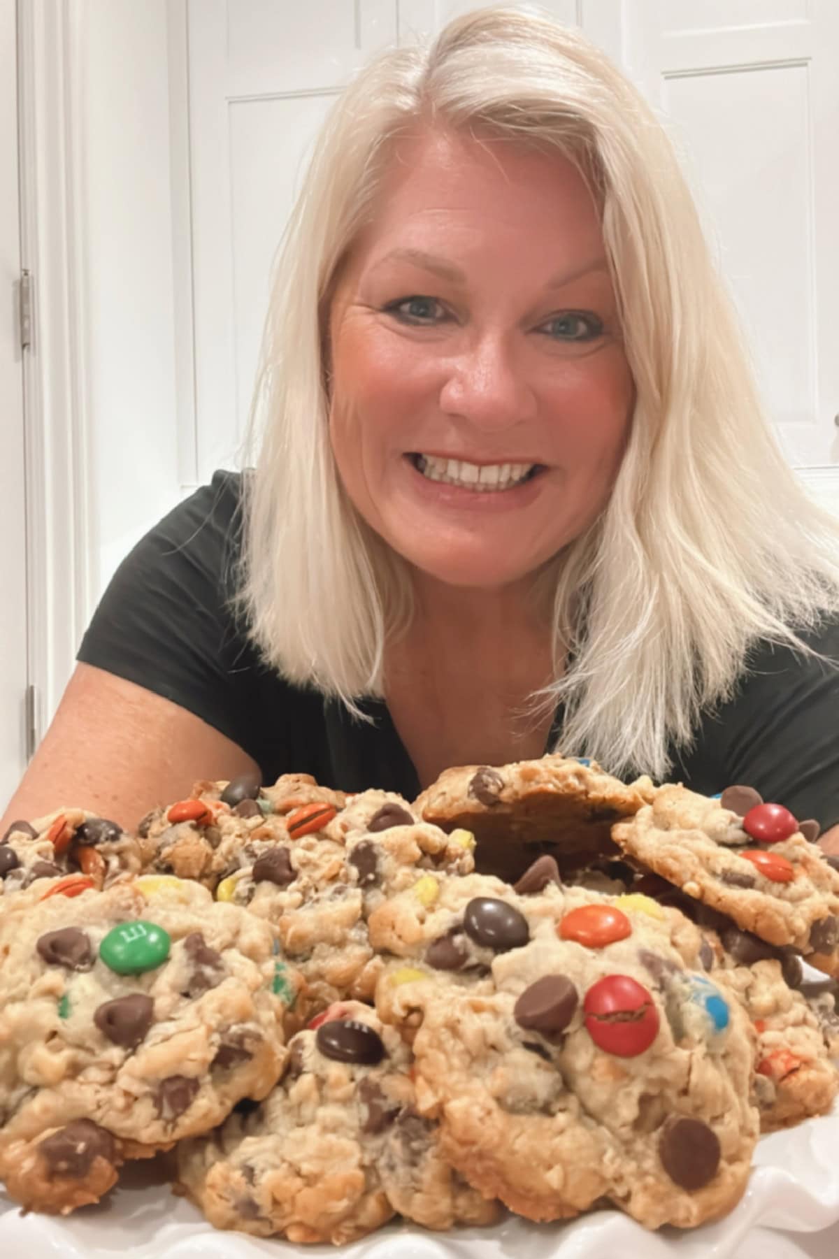 These cookies have a little bit of everything in them. They’re a bit like Monster Cookies, but they have pretzels added in and an (optional) sprinkle of sea salt on top. They’re quite the hearty and filling cookie. And they’re big cookies too, so one cookie is the perfect indulgent splurge.